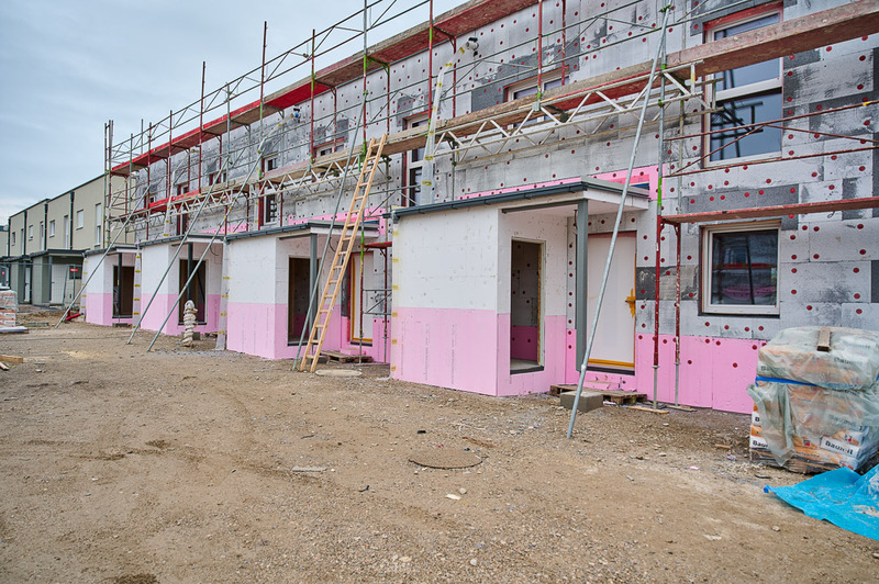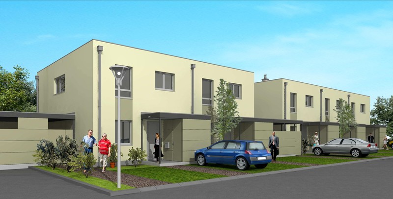 Zur Unterstützung der Wärmepumpe wird am Dach jedes Reihen- bzw. jeder Doppelhaushälfte eine Photovoltaikanlage mit min. 0,75 kWp aufgestellt.